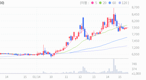 오스테오닉의 2025.01.14 기준(장마감)현재 주가는 7930원이며, 이는 전일 종가인 6900원보다 1030원 상승한 결과를 보여주고 있습니다.