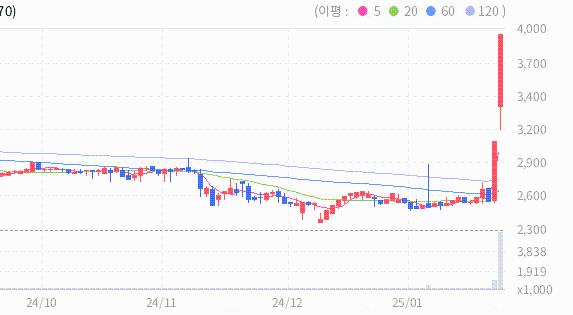 평화홀딩스의 2025.01.23 기준(장마감)현재 주가는 3965원이며, 이는 전일 종가인 3050원보다 915원 상승한 결과를 보여주고 있습니다.