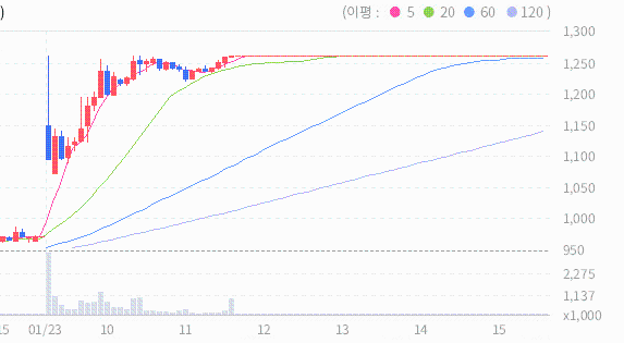 금일 종가가 장기 이동평균선을 돌파한 것은 주가의 강력한 지지선을 넘어선 긍정적인 신호로 해석할 수 있습니다. 이러한 모습은 향후 주가 흐름에 긍정적인 영향을 미칠 것으로 예상됩니다.